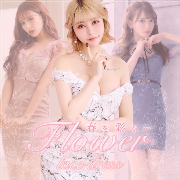 オフショルダーフラワー刺繍レースペプラムタイトミニドレス