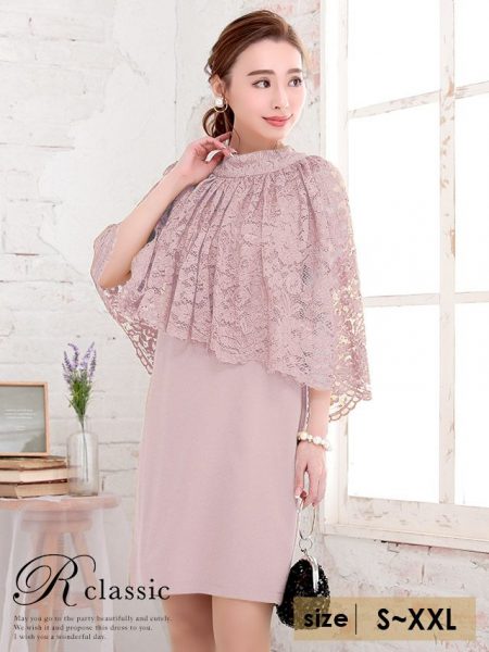 ケープフェミニンデザインハイネックタイトミニ結婚式パーティードレス