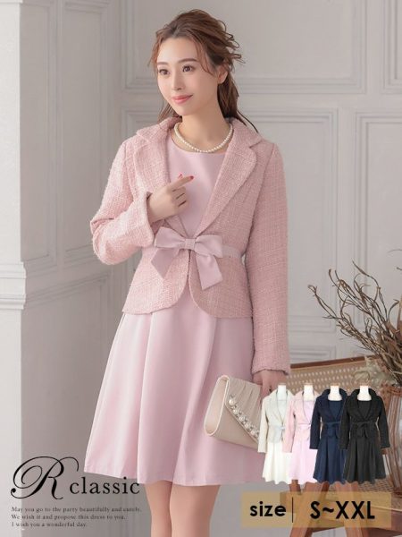 ツイードジャケット&フレアワンピースフォーマルスーツ