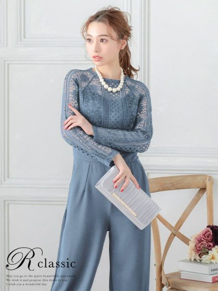 ハイウエストレース切り替えハンサム結婚式パーティーパンツドレス