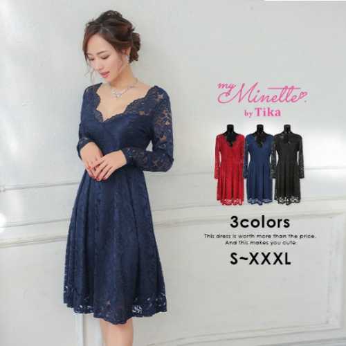 オールレース長袖ハイウエスト切替プチプラ膝丈フレアドレスワンピース