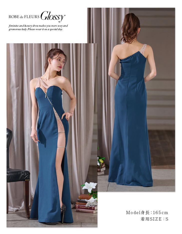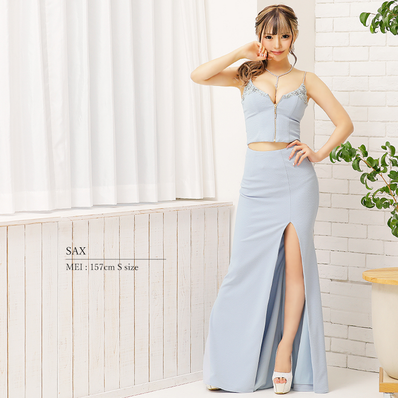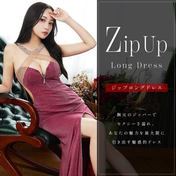高級クロスデコルテビジューバストジップノースリーブタイトロングドレス