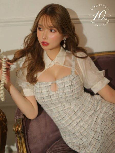高級袖ありパフスリーブセットアップマイクロミニドレス