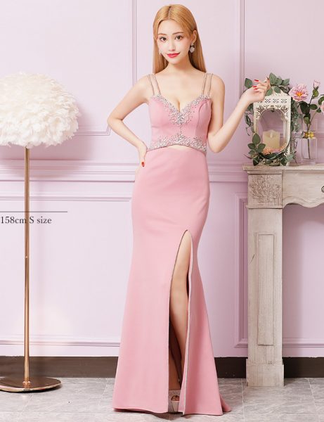 高級ゴージャスビジューキャミソールタイトロングドレス