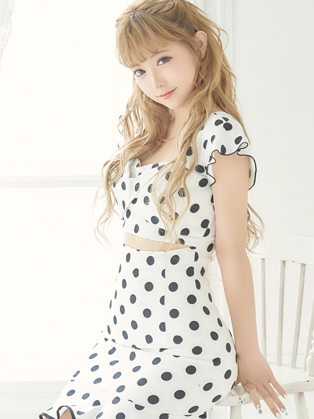 ウエストカット裾フリルドット柄タイトミニドレス