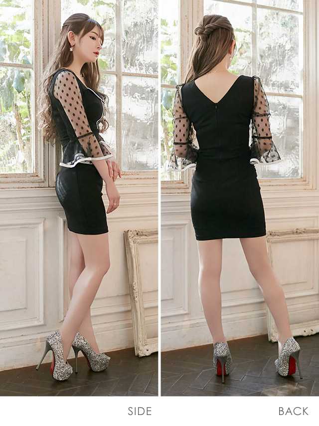 ドットシースルーベルスリーブタイトミニドレス