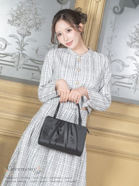 首元と手元に飾ったリボンが