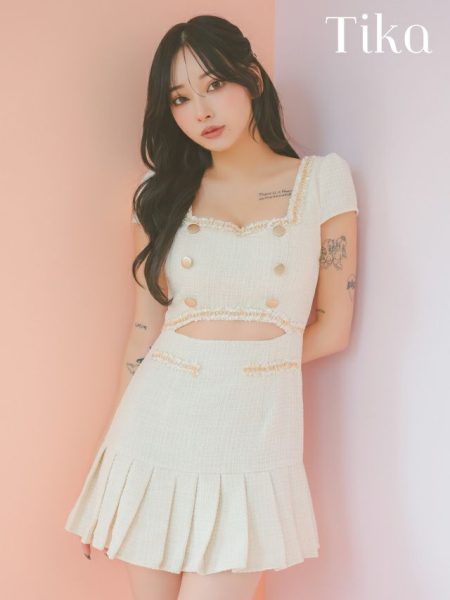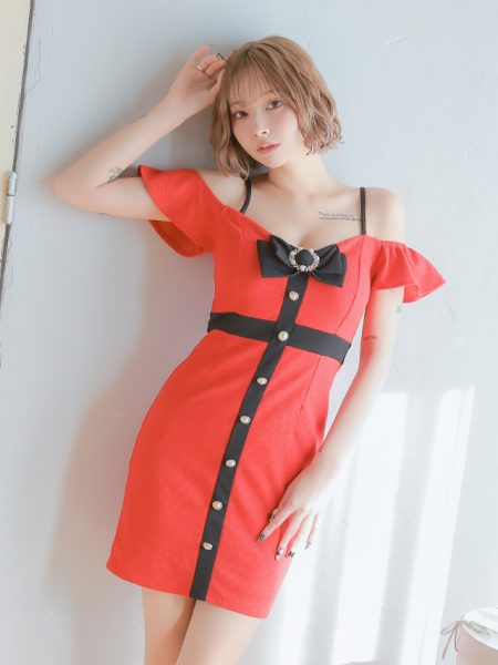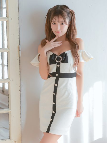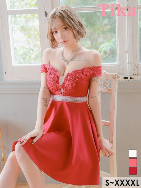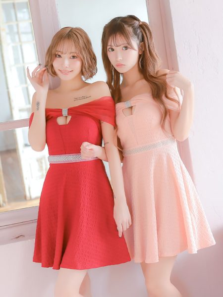 デコルテを綺麗に魅せてくれる肩あきデザインで