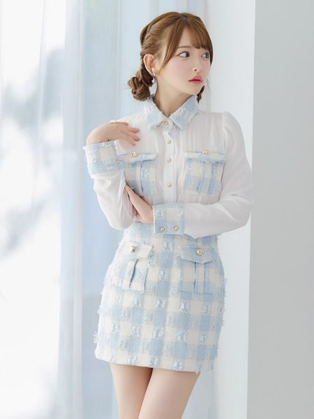 淡くきらめく、爽やかブルー×ツイード韓国ドレス💎 Dress 2025.04.172025.06.12 大人気のツイード生地と爽やかな印象を与える春夏に着たいブルーカラーを合わせたドレスのご紹介✨ イイ女感を醸し出し透明感も溢れ差をつける💖\モテオーラ全開で指名客GETしよ/ ツイード×ゴールドの縁取りで高級感もたっぷり❤️🔥誘惑的なバストジップ💋\モデル着用アイテム/ 𝑪𝑯𝑬𝑪𝑲✧˖꙳ デコルテが広めにあいたスクエアネックでスッキリ小顔効果もバツグン🥀\モデル着用アイテム/ 𝑪𝑯𝑬𝑪𝑲✧˖꙳ お腹を覗かせるウエストカットでセクシーに肌見せ💎\プラスワンアイテム/ 𝑪𝑯𝑬𝑪𝑲✧˖꙳ ウエストベルトでウエストマークし、メリハリのあるボディへ💖\モデル着用アイテム/ 𝑪𝑯𝑬𝑪𝑲✧˖꙳ Vネックデザインでスッキリ小顔効果を叶え、伸縮性のある柔らかニット生地で着心地も◎\モデル着用アイテム/ 𝑪𝑯𝑬𝑪𝑲✧˖꙳ ガーリーなブロックチェックがお洒落映え◎万能に着回せるセットアップドレス!\プラスワンアイテム/ 𝑪𝑯𝑬𝑪𝑲✧˖꙳ ツイードドレスはこちら🔍 韓国ドレスをもっと見る🔍
