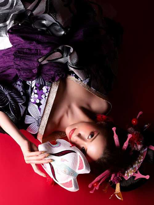 [花魁] 菊柄 2wayおいらん浴衣5点セット (浴衣+下駄+平帯+兵児帯+肌襦袢) (石原彩香着用)