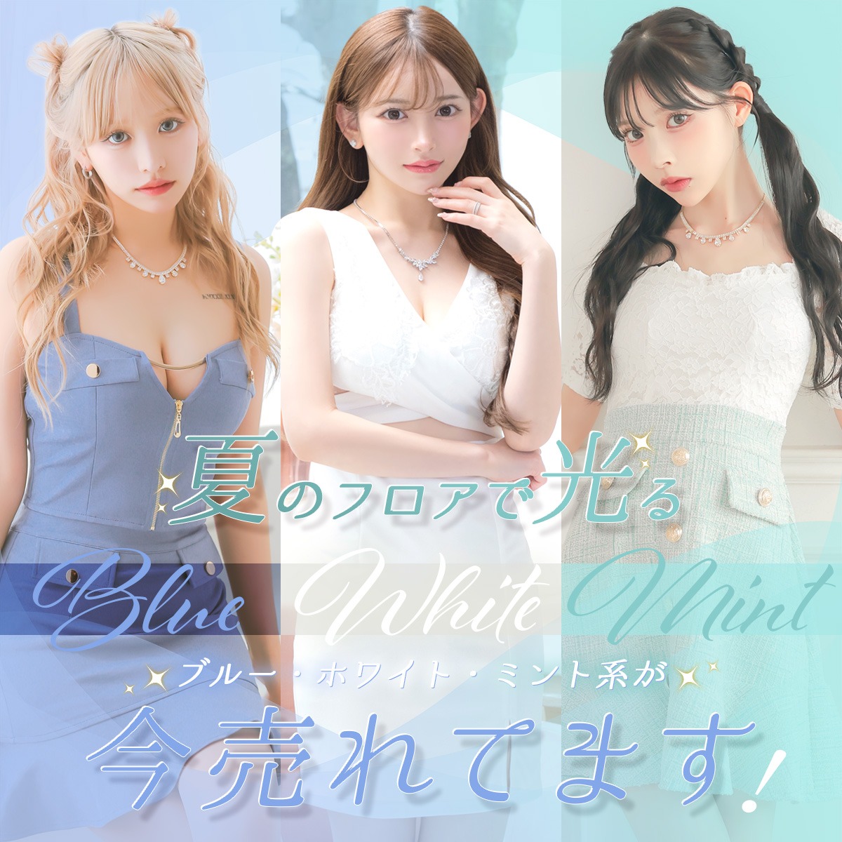 夏のフロアで光る♡ブルー・ホワイト・ミント系が今売れてます🫧 Dress 2025.07.09 暑い夏にぴったりな涼しげなカラードレスが今大人気!!特にブルー、ホワイト、ミント系がよく売れています💭 お洒落&好感度もUPする旬ドレスをピックアップ♪ 目次 ブルー💙ホワイト🤍ミント💚 ブルー💙 谷間を強調させるメタルフレームやジップで男心をくすぐる小悪魔ドレス😈 CHECK♡ SWEETなお顔周りを演出するミニドレス♡胸元にはエレガントレースやガーリーリボン付きで華やかさも◎ CHECK♡ ホワイト🤍 sexyにキュッと引き締まったくびれをアピールできるミニドレス☆ CHECK♡ スタイルアップに導くハイウエストベルトと立体的なラップスカートで美脚を覗かし女性らしい美曲線をアピール♪ CHECK♡ ミント💚 そのまま同伴やアフター、普段着としても多様なシーンで活躍してくれる1着です♡ CHECK♡ レース×ツイードで女子力爆上げ!!上品で愛らしいデザインに🎀 CHECK♡ もっとドレスを見る