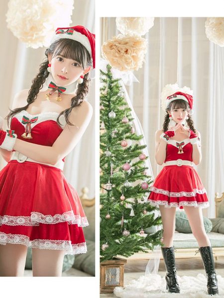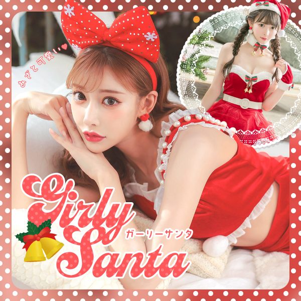 フリルスリーブデザインパール付きガーリーサンタコスプレ