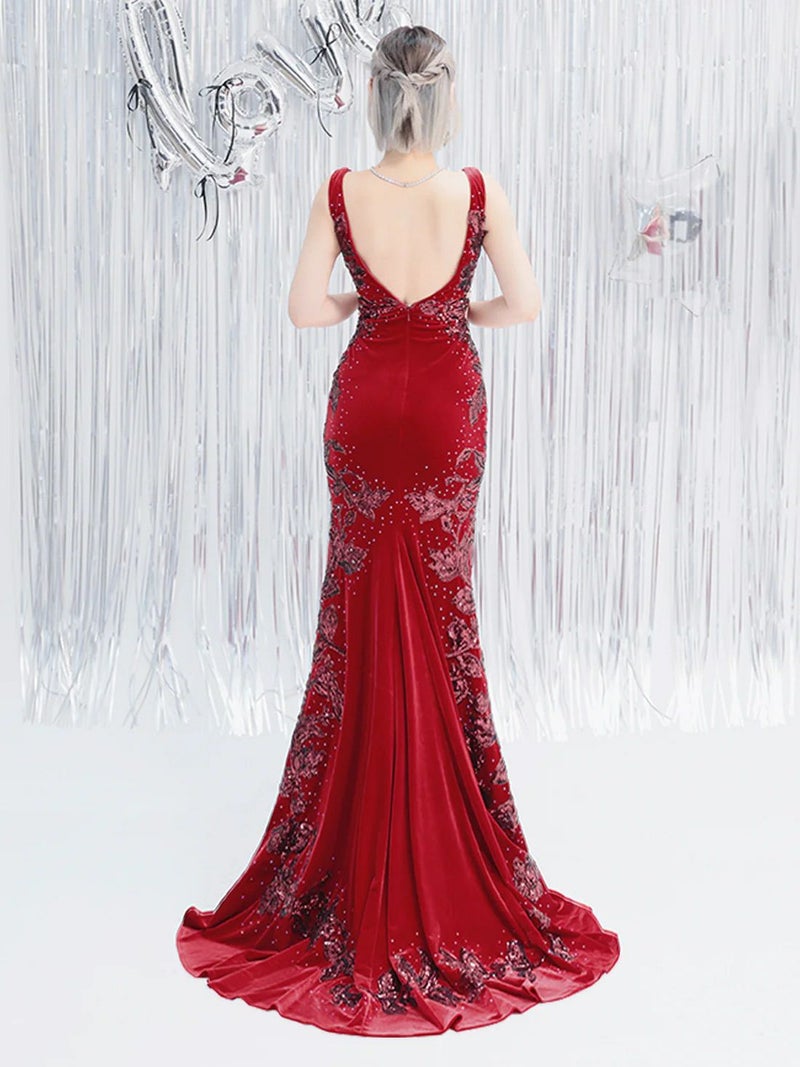 キャバドレス ロングドレス Angel-R エンジェルアール  高級ノースリーブベルベットスパンコールレースくびれタイトロングドレス