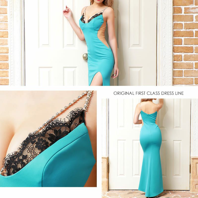 5. [Angel-R/エンジェルアール] 高級キャバドレスランジェリーレースビジューシースルーくびれタイトロングドレス