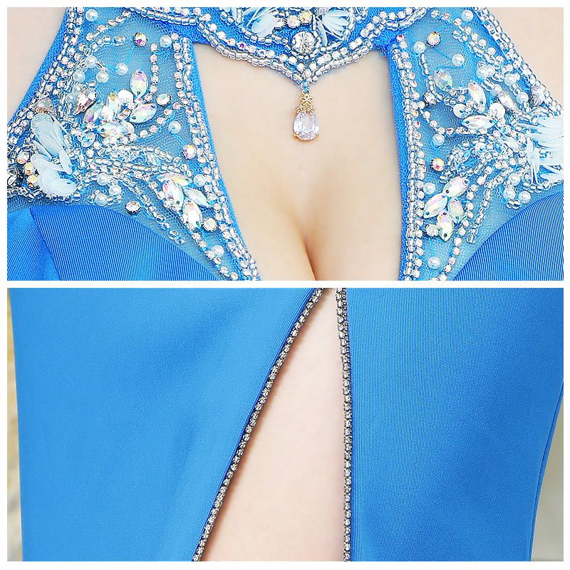輝くビーズが胸元に目を惹く☆ [Angel-R/エンジェルアール] 高級ホルターネック谷間魅せくびれシアータイトロングドレス
