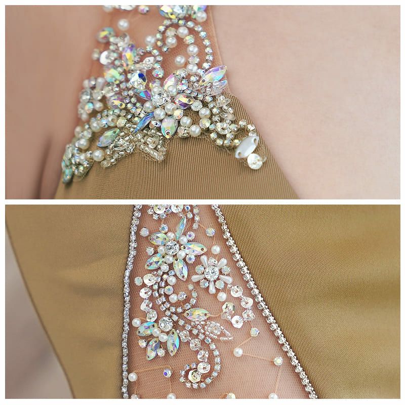 3. [Angel-R/エンジェルアール] 高級ノースリーブホルターネックビジューパールホルターネックタイトロングドレス