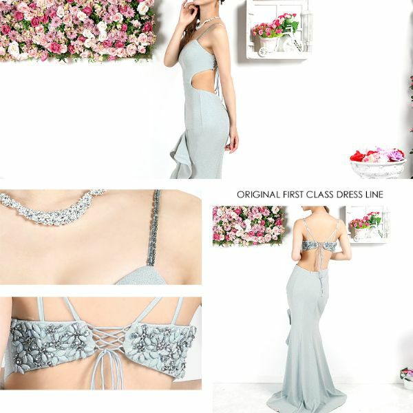 4. [Angel-R/エンジェルアール] 高級ワンカラーグリッターラメバックレースアップフリルドレープキャミソールくびれタイトロングドレス