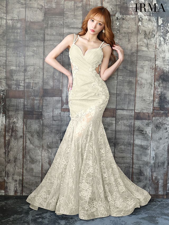 5. [IRMA/イルマ] 高級 バースデーフラワー刺繍キャミソールバックレースアップくびれシアータイトロングドレス