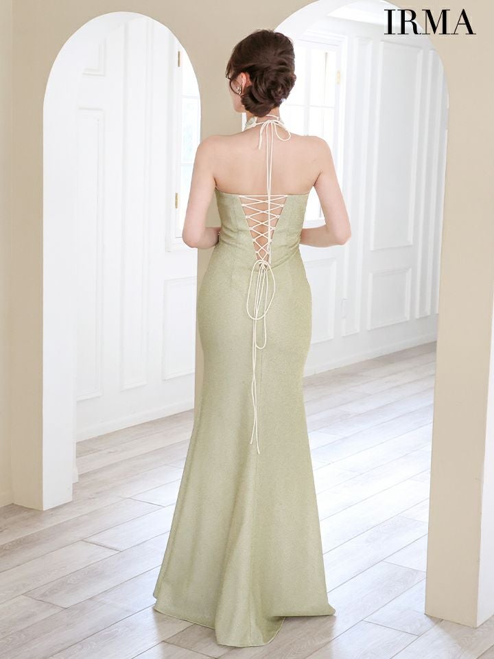 5. [IRMA/イルマ] 高級ホルターネックエレガントビジューくびれラメニットタイトロングドレス