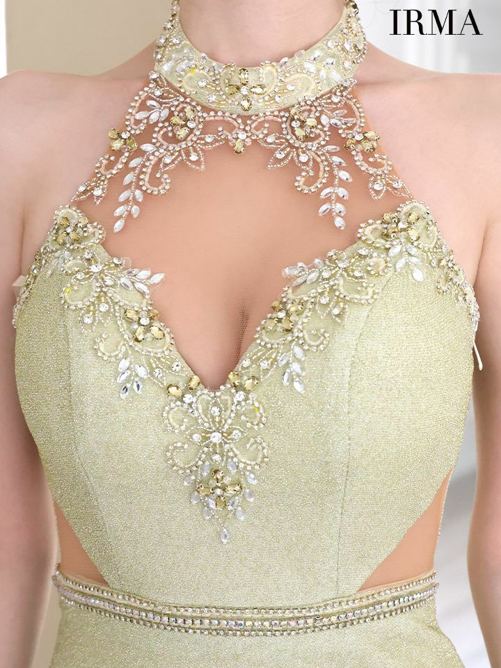 4. [IRMA/イルマ] 高級ホルターネックエレガントビジューくびれラメニットタイトロングドレス