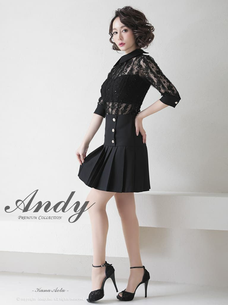 キャバドレス Andy アンディ 高級襟デザインレースプリーツフレアミニドレス