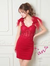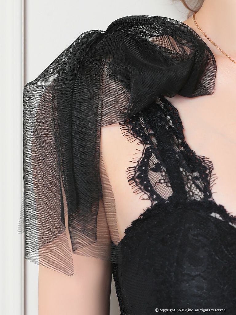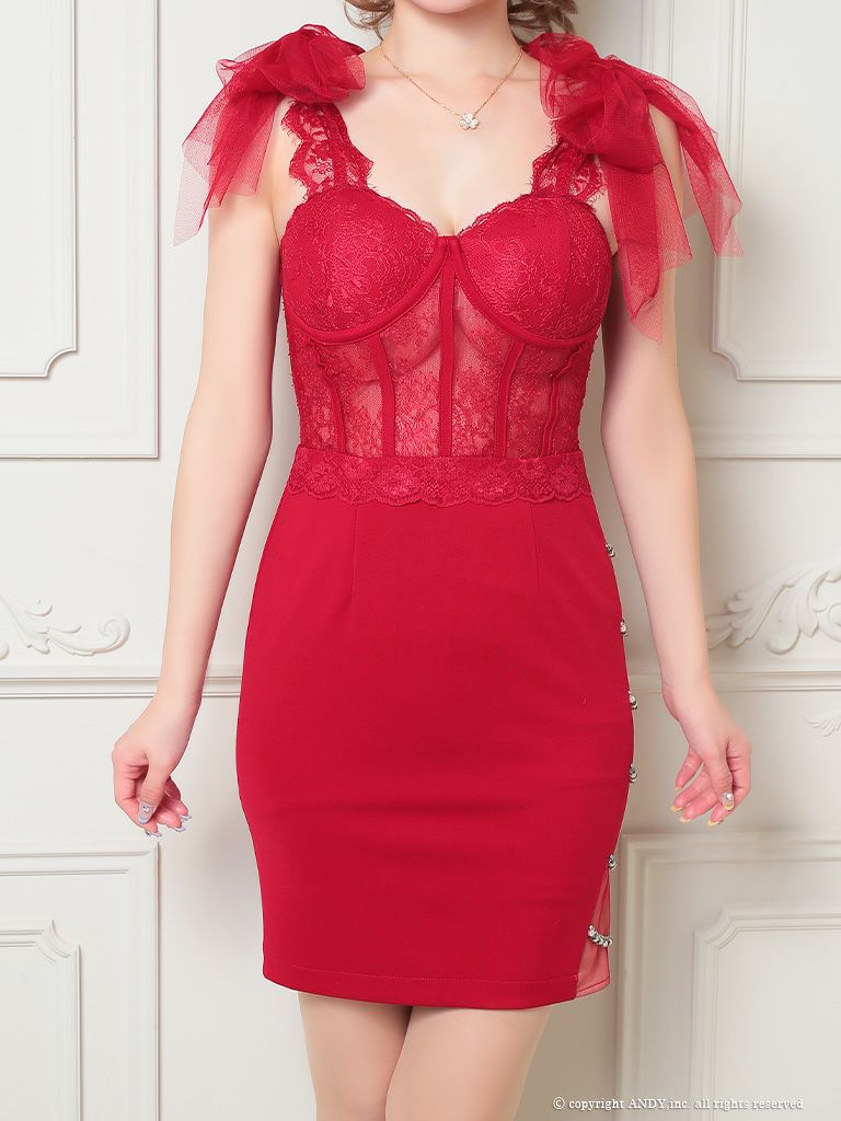キャバドレス an アン 高級ノースリーブショルダーリボンレースくびれワンカラータイトミニドレス
