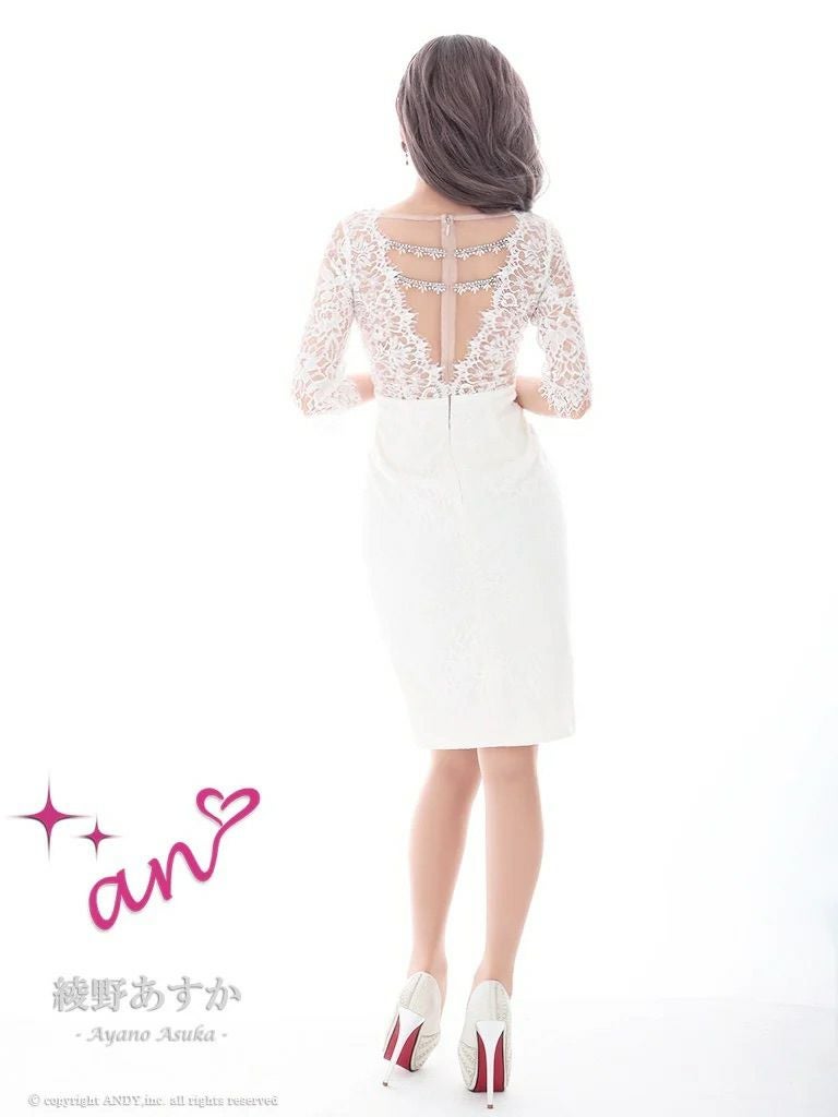 キャバドレス an アン 高級袖あり花柄レースくびれスリットビジュータイトミニドレス