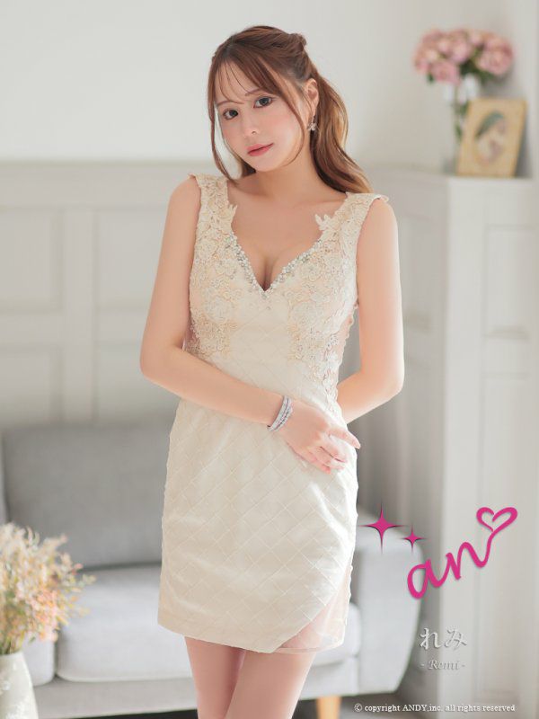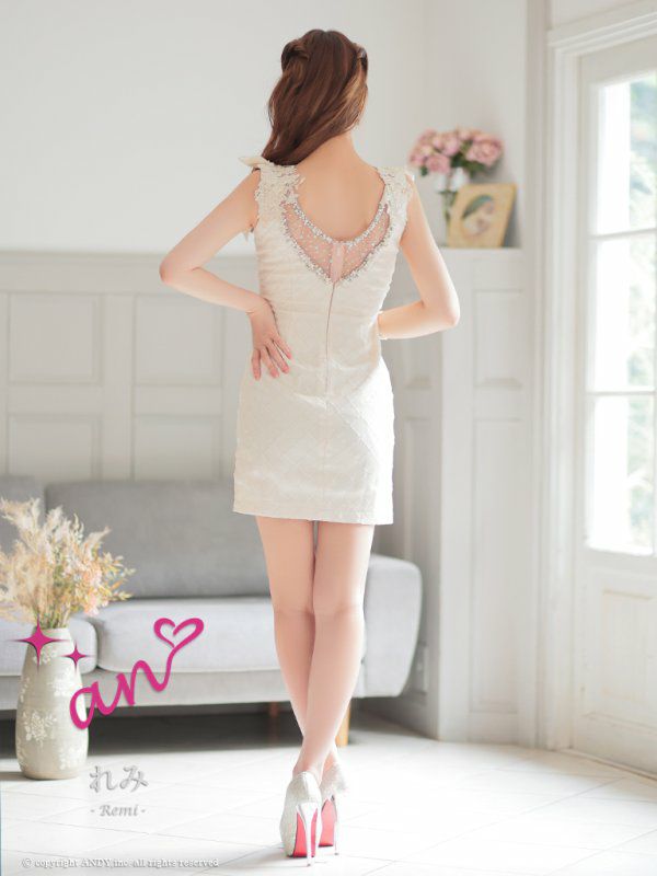 4. [an/アン] 高級ノースリーブリボンレースビジューシアーくびれタイトミニドレス