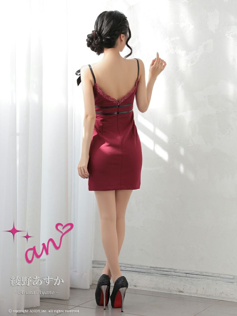 大人の色気溢れるデザイン☆ [an/アン] 高級キャミソールくびれショルダーリボンレースタイトミニドレス