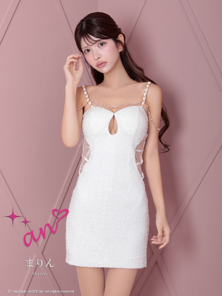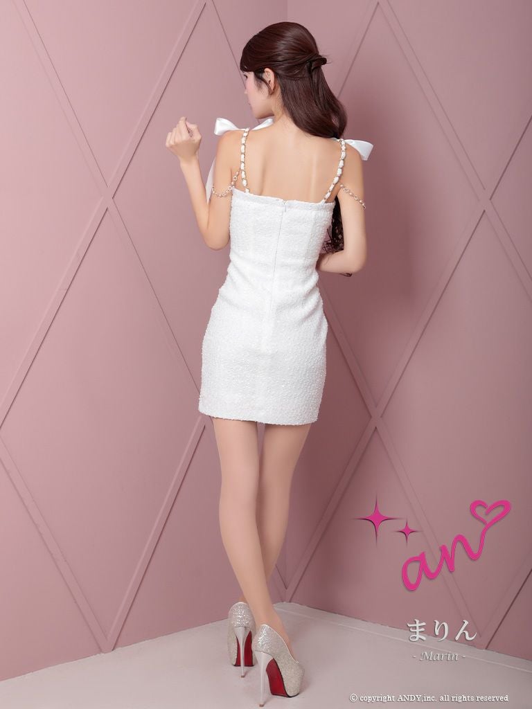 ショルダーリボン×チェーンで可愛く☆ [an/アン] 高級 ツイード キャミソール くびれ ショルダーリボン チェーン バストカット 谷間魅せ タイトミニドレス