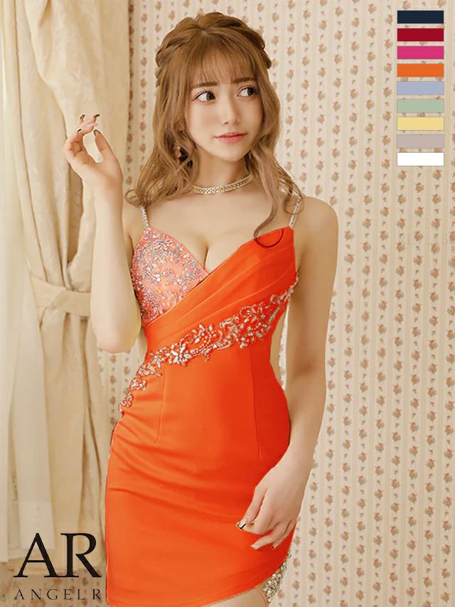 キャバドレス ミニドレス Angel-R/エンジェルアール 高級ビジューデザインキャミソールくびれタイトミニドレス
