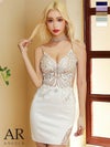 Angel-R エンジェルアール 高級フラワー刺繍レースデザインビジューキャミソールタイトミニドレス