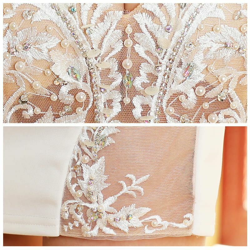 4. [Angel-R/エンジェルアール] 高級フラワー刺繍レースデザインビジューキャミソールくびれタイトミニドレス