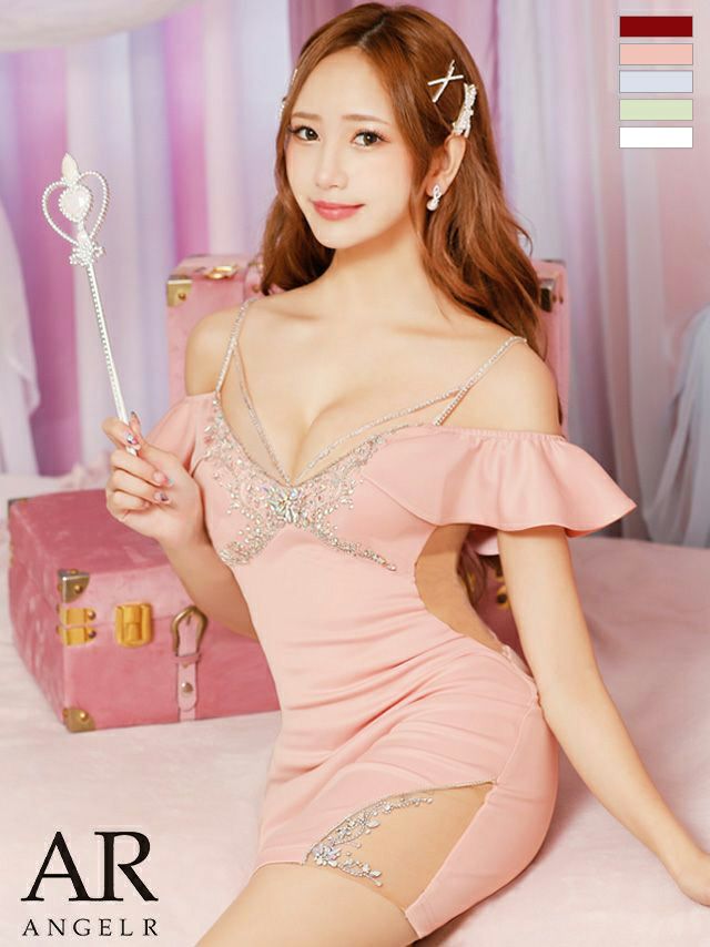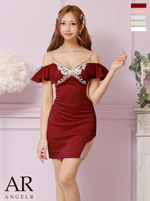 キャバドレス ミニドレス[Angel-R/エンジェルアール] 高級キャミソールバストショルダービジュー肩あきくびれタイトミニドレス