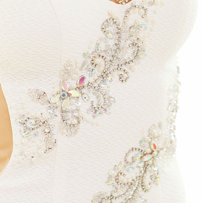 4. SALE [Angel-R/エンジェルアール] 高級アシンメトリーバストラインビジュー刺繍パールキャミソールくびれタイトミニドレス