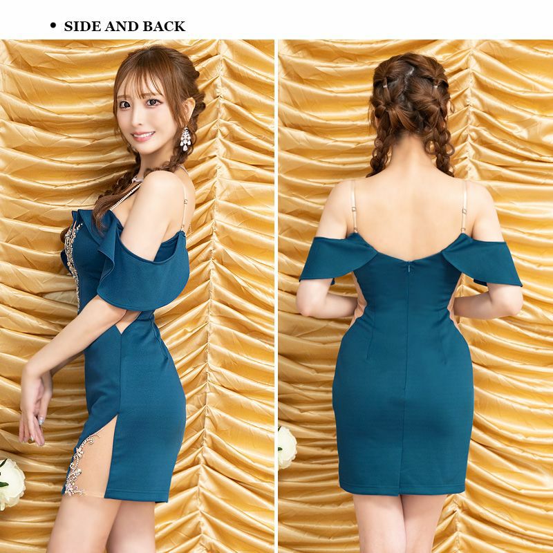 5. SALE [Angel-R/エンジェルアール] 高級肩出し 二の腕カバーフリル袖フロントビジューくびれタイトミニドレス