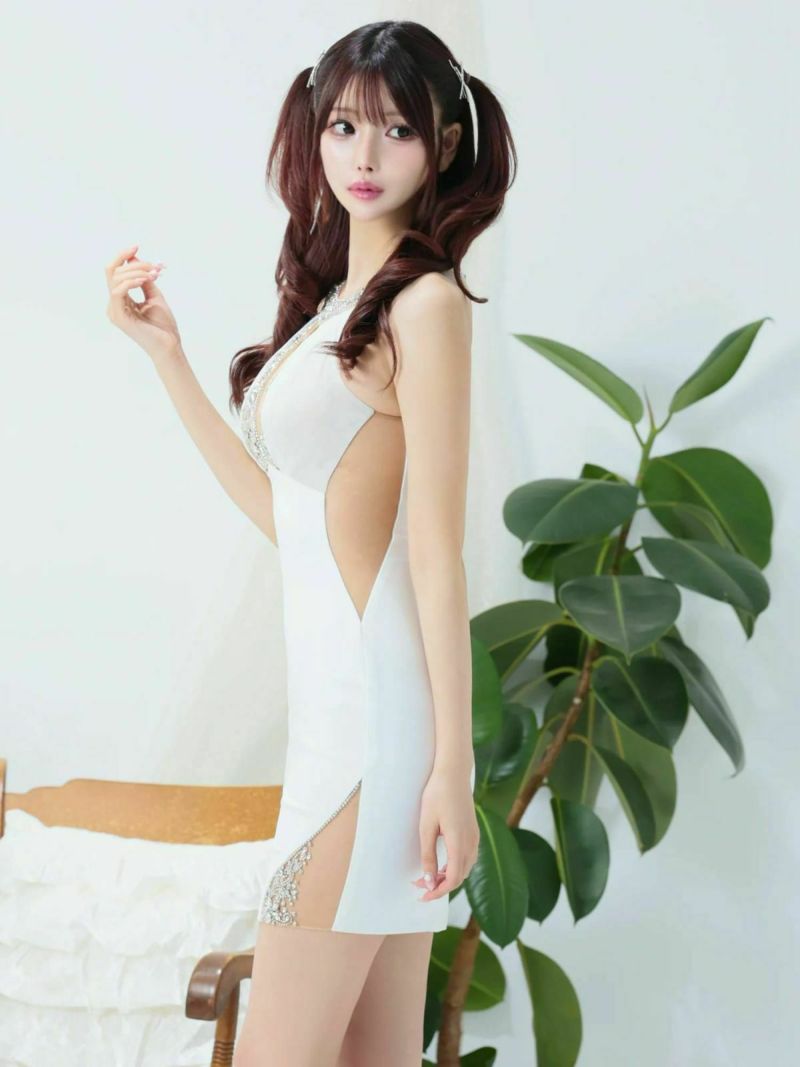 3. [Angel-R/エンジェルアール] 高級 ホルターネック バストカット くびれ ビジュー ゴージャス 谷間魅せ タイトミニドレス (一条響着用)