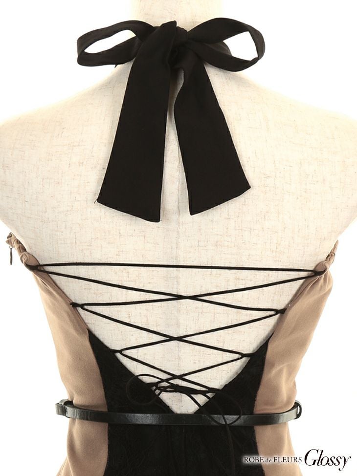 キャバドレス ミニドレス [SALE] ROBEdeFLEURSGlossy ローブドフルールグロッシー 高級ホルターネックバイカラーラインデザインタイトミニドレス