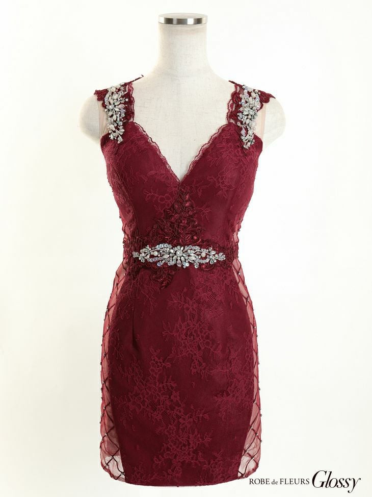 ストレッチが効いた生地で着心地も抜群☆ [ROBEdeFLEURSGlossy/ローブドフルールグロッシー] 高級くびれブロックチュール切替ノースリーブビジュータイトミニドレス
