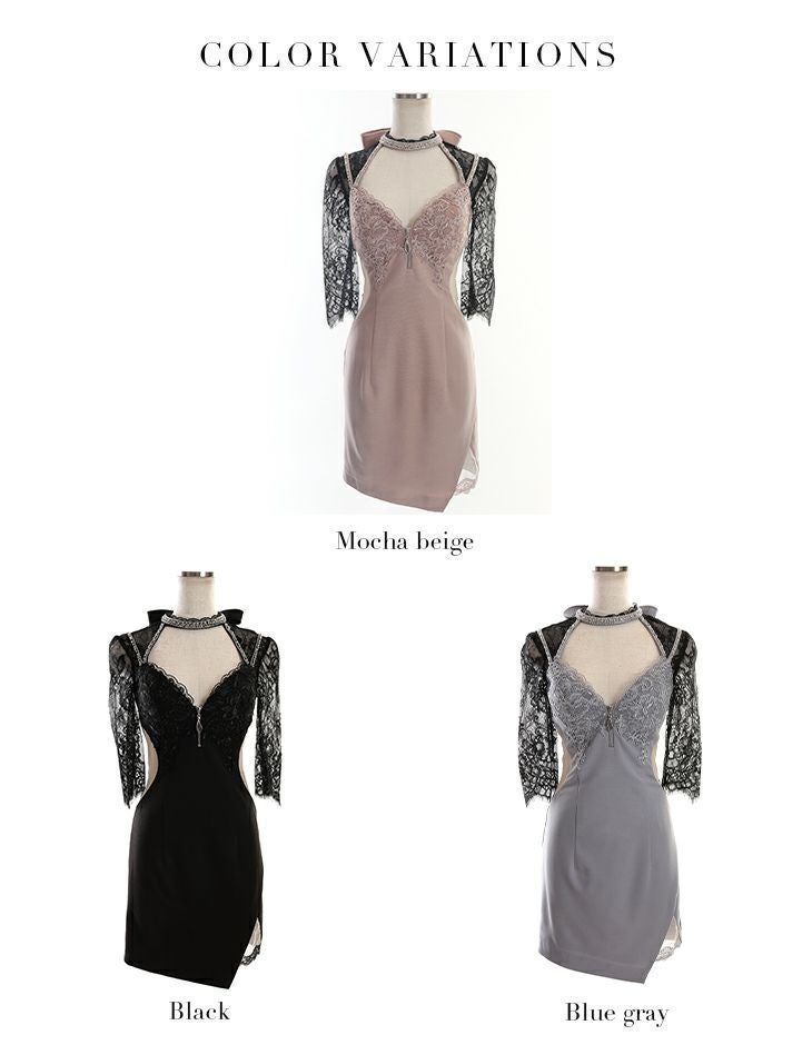 5. [ROBEdeFLEURSGlossy/ローブドフルールグロッシー] 高級 袖あり レース バストカット ジップ くびれ チュール切替 谷間魅せ タイトミニドレス