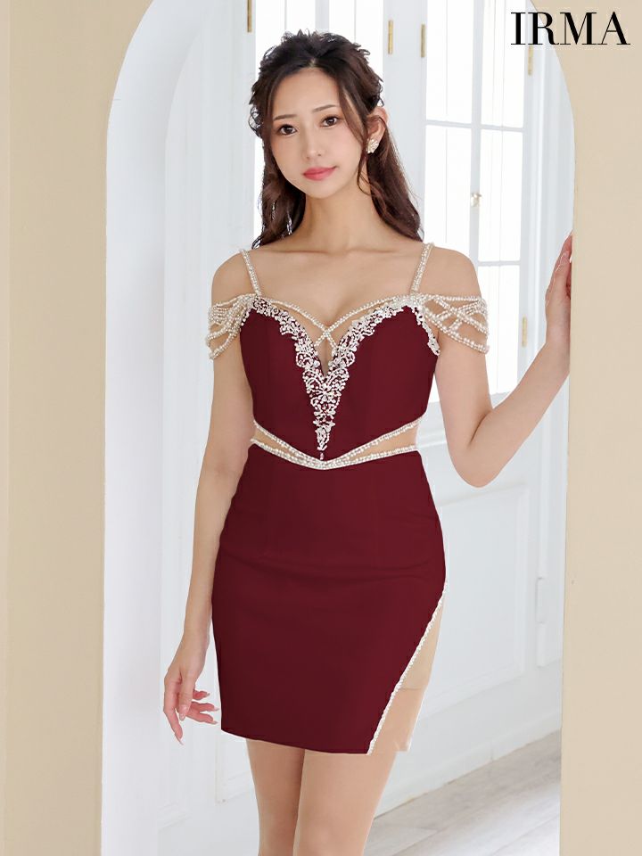 ビジューがゴージャスに煌めくドレス☆ SALE [IRMA/イルマ] 高級 ゴージャス フラワービジュー 肩出し 二の腕カバー くびれ バストコード 谷間魅せ タイトミニドレス