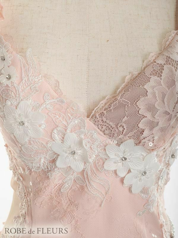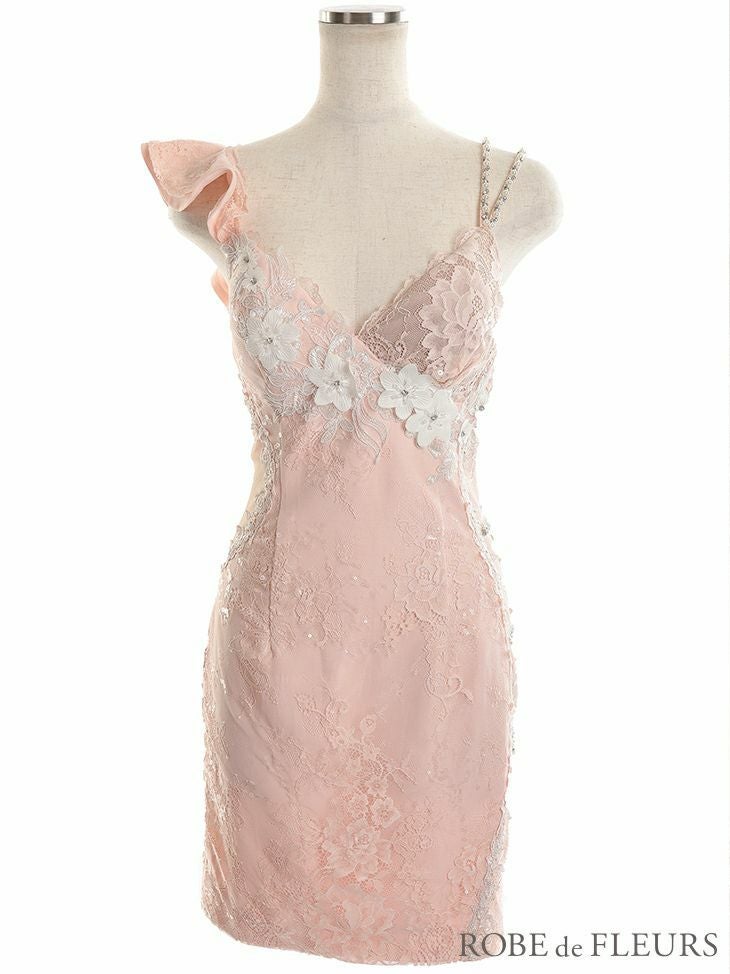 フラワーレース×パールストラップがフェミニン☆ [ROBEdeFLEURS/ローブドフルール] 高級立体フラワー総レースくびれキャミソールタイトミニドレス