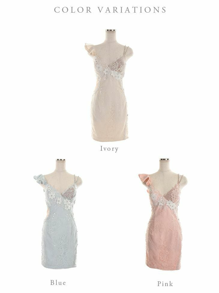 4. [ROBEdeFLEURS/ローブドフルール] 高級立体フラワー総レースくびれキャミソールタイトミニドレス