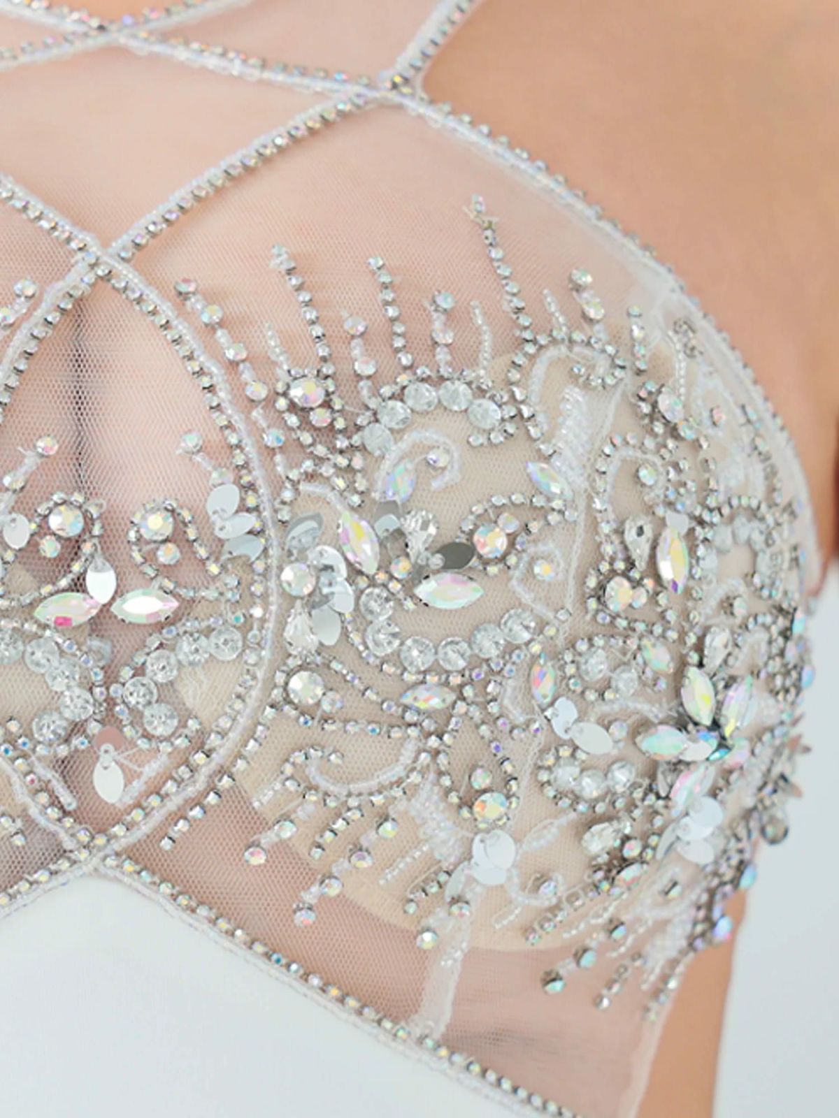 他の画像を見る シースルーの透け感で美しく魅せる☆ [Angel-R/エンジェルアール] 高級 ホルターネック 長袖 袖あり シースルー くびれ パールビジュー バストカット 谷間魅せ タイトミニドレス ¥ 32,780 税込 お気に入りに追加