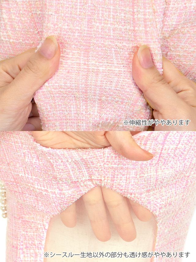 キャミソールパールくびれシアー切り替えツイードミックスタイトミニドレスのイメージ画像4