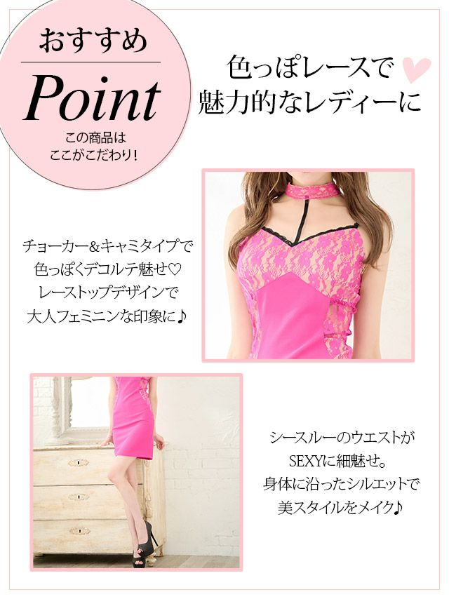 チョーカー付きフラワーレースキャミソールくびれタイトミニドレスの商品特徴