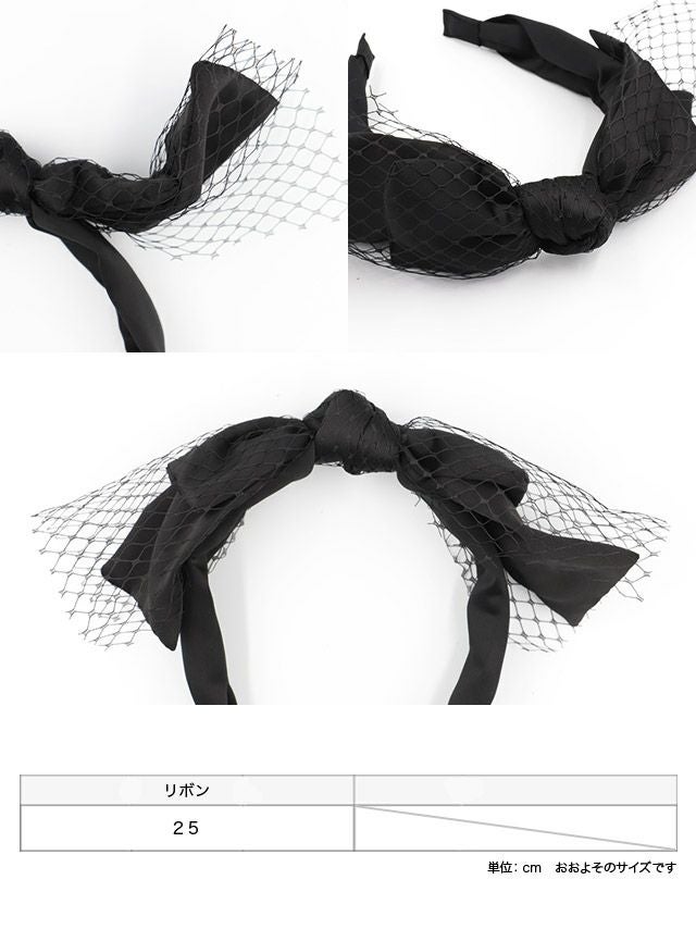 カチューシャ リボン ブラック 黒 メッシュ ヘアアクセサリー ヘアアクセ 髪飾り