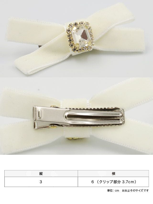 ビジュー付きベロアリボンクリップ2個セットヘアアクセサリーの商品詳細