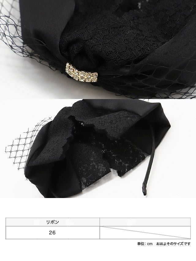 ビッグリボンレースメッシュカチューシャヘアアクセサリーの商品詳細
