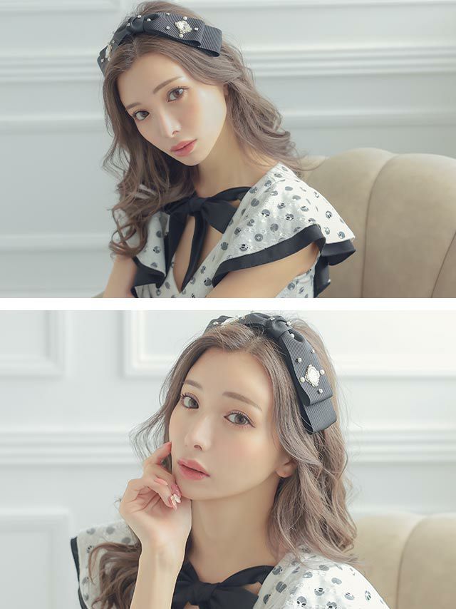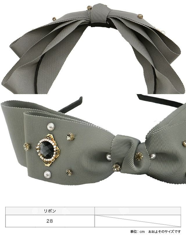ビジューパールを散らばした華やかヘアアクセ♪ キラキラビジューパール付きリボンカチューシャヘアアクセサリー